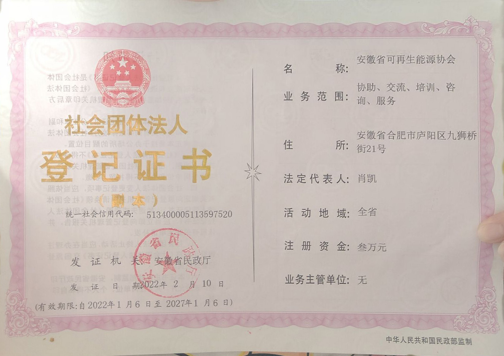 社会团体法人登记证书